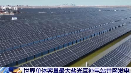 โรงไฟฟ้าพลังแสงอาทิตย์พันเมกะวัตต์จีน นาเกลือและเลี้ยงสัตว์น้ำเปิดใช้งานแล้ว