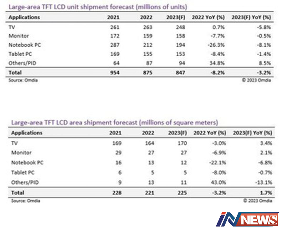 ออมเดียคาดยอดส่งจอLCDขนาดใหญ่ ลดลง3.2%YoYแต่จัดส่งเพิ่ม1.7%ปี66