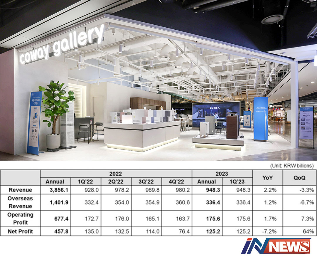 Coway ผลประกอบการไตรมาส1 ปี66 รายได้948.3พันล้านวอนเพิ่ม2.2%