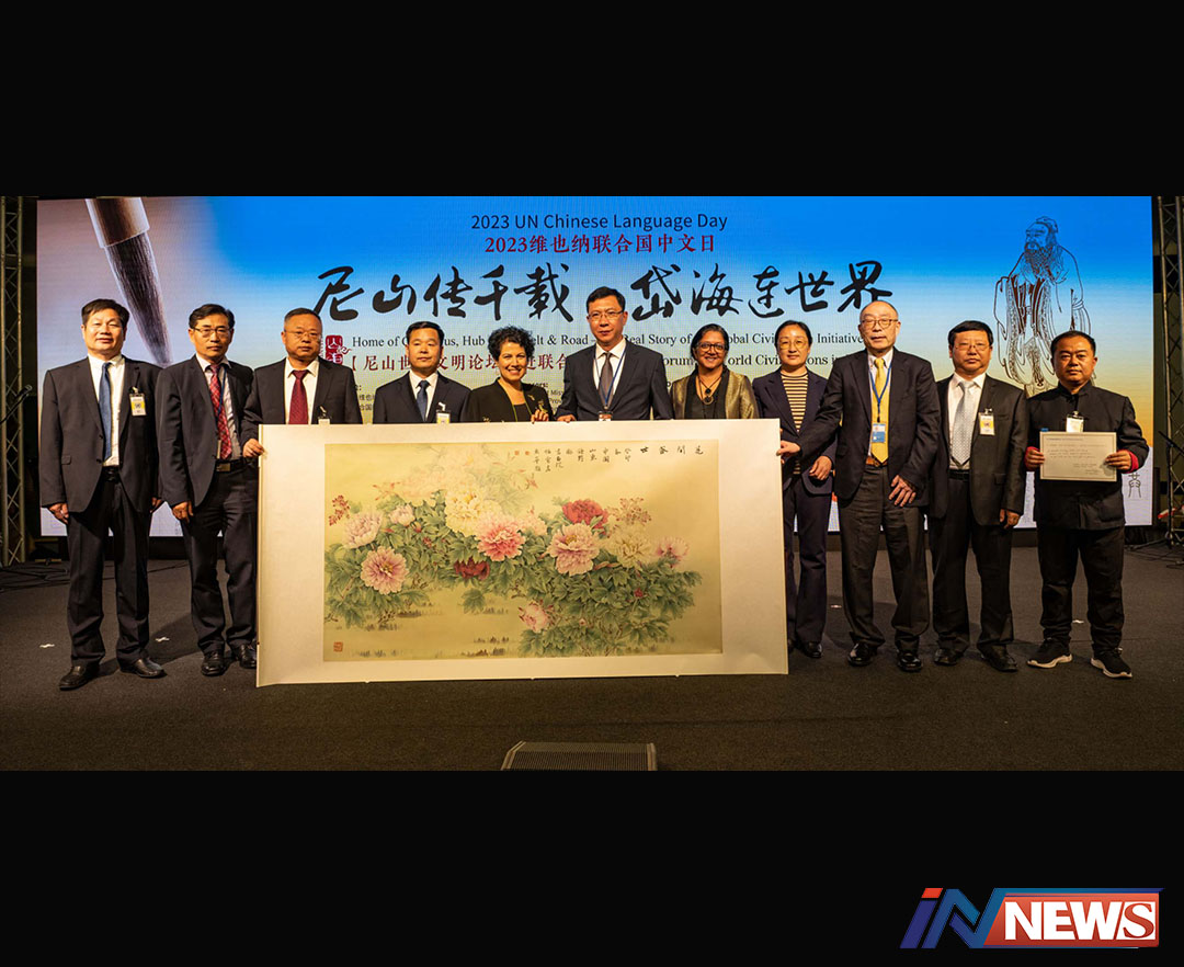 'ภาพวาดดอกโบตั๋นจีน'อวดโฉมในงาน วันภาษาจีนแห่งสหประชาชาติ