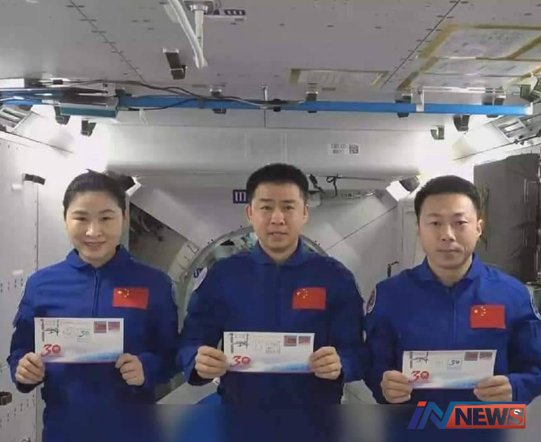 China Media Group (CMG) สื่อหลักของจีน รายงาน นักบินอวกาศทั้งสามแห่งยานอวกาศเสินโจว-14 (Shenzhou-14) ของจีน ส่งคำอวยพรผ่...
