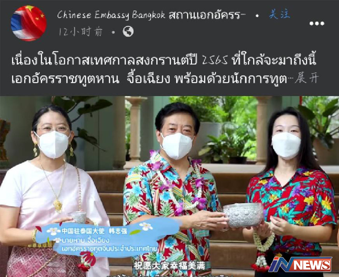 สถานเอกอัครราชทูตของจีนประจำไทย โพสต์คลิปวิดีโอเทศกาลสงกรานต์ปี65