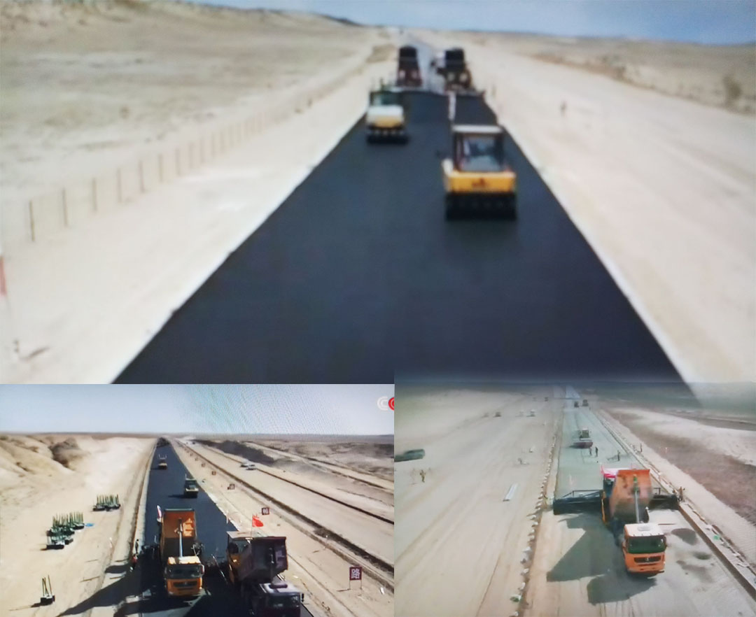 กรุงเทพฯ-โครงการก่อสร้างหลักสำหรับทางด่วนข้ามทะเลทรายสายแรกในเขตปกครองตนเองซินเจียงอุยกูร์ ทางตะวันตกเฉียงเหนือของจีน เส...