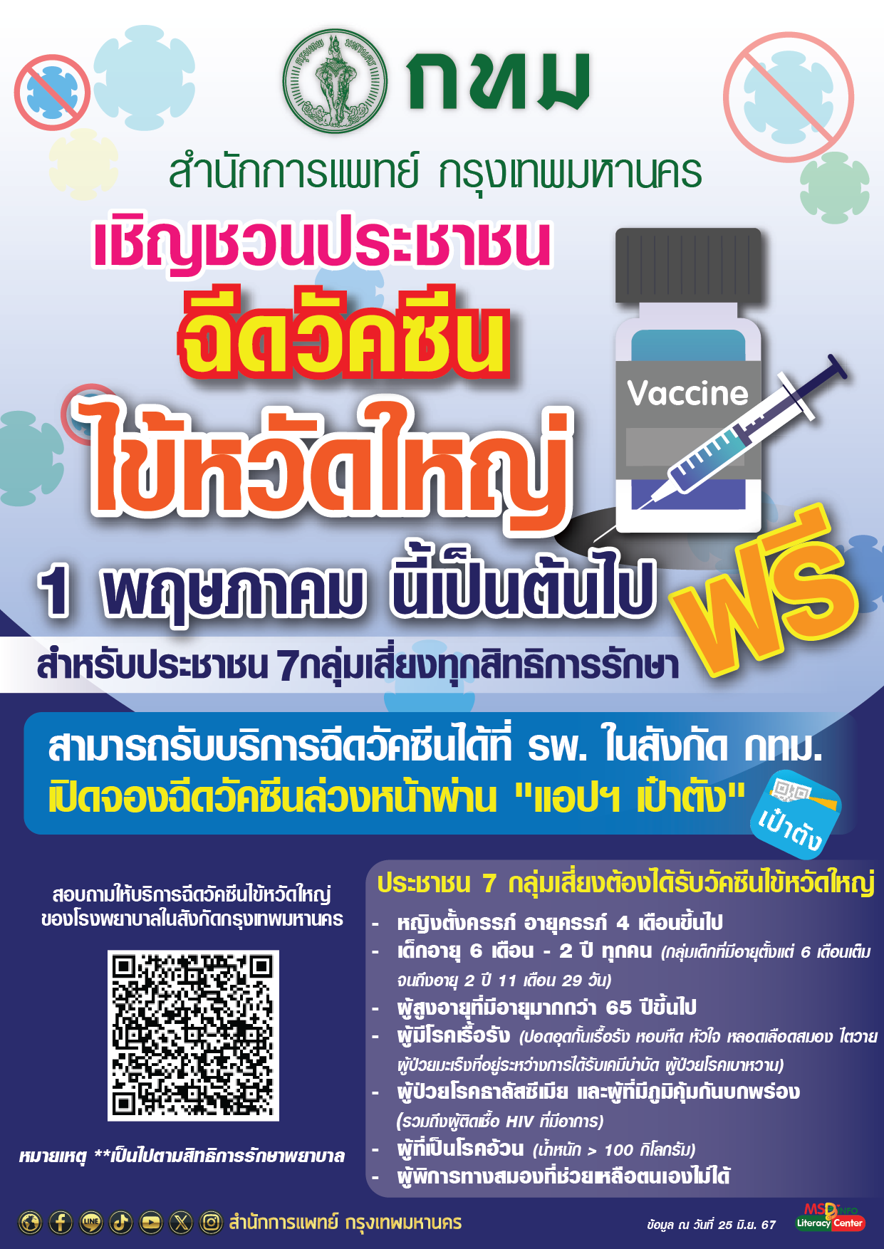 กทม.เตรียมพร้อมฉีดวัคซีนไข้หวัดใหญ่ กลุ่มเสี่ยง-นักเรียนป.1-ป.3รร.ในสังกัด