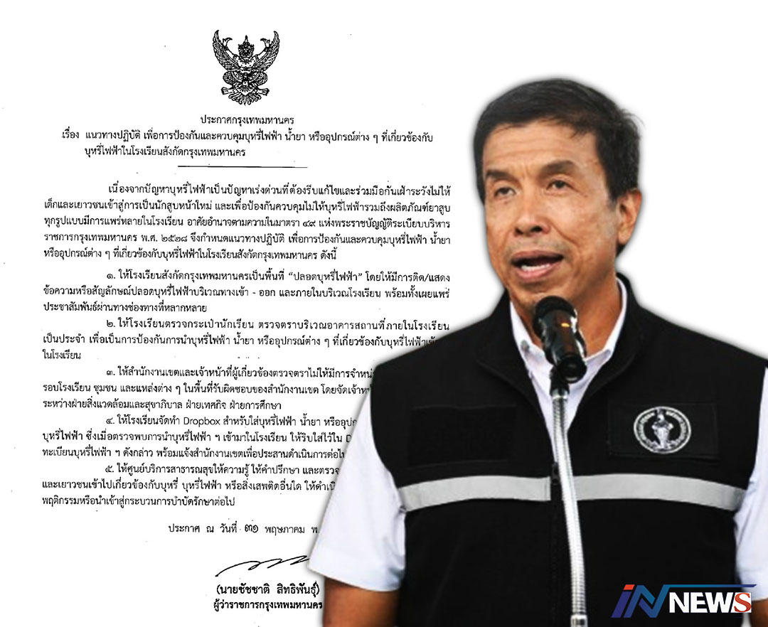 ผู้ว่าฯชัชชาติสั่งเข้ม5ข้อกับโรงเรียนกทม. 'ต้องปลอดบุหรี่ไฟฟ้า'