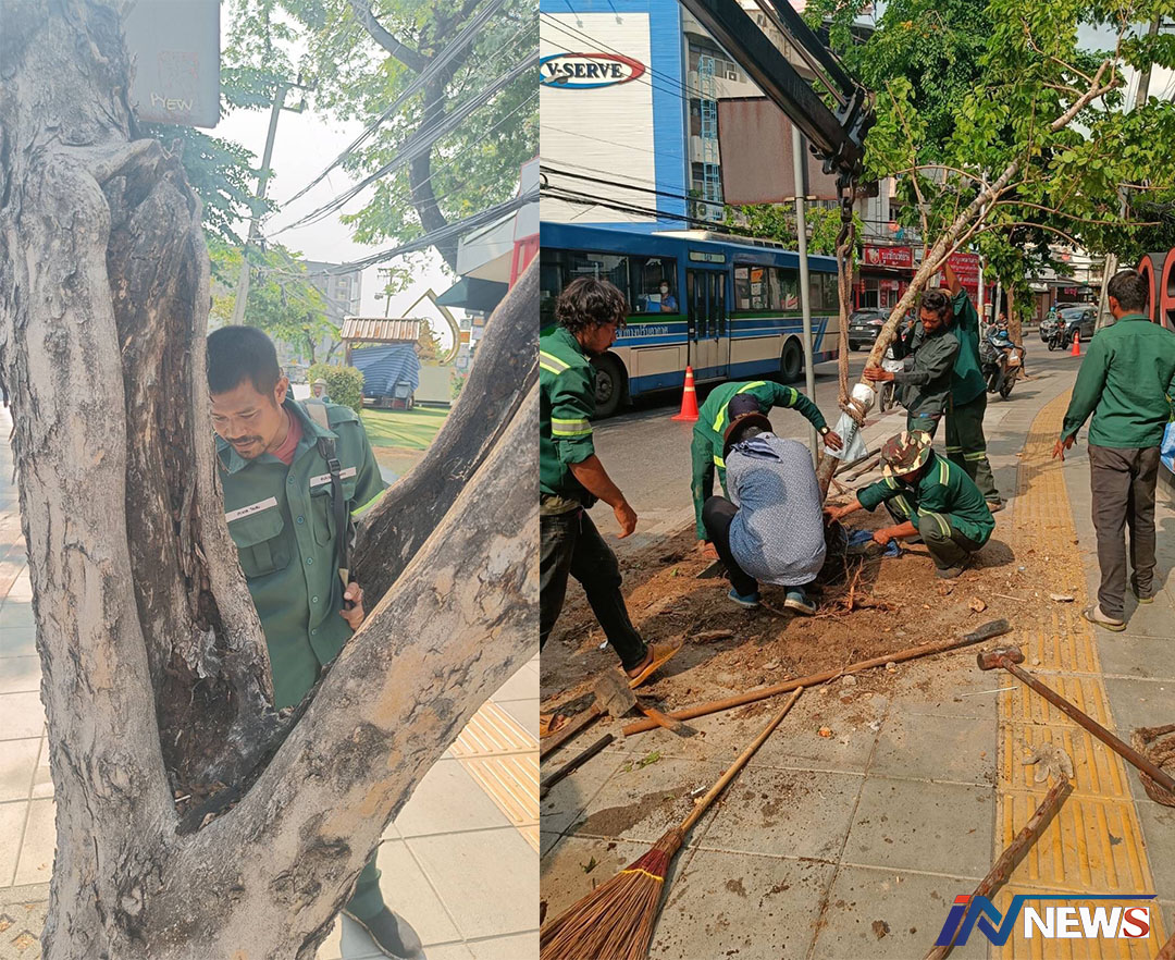เขตสวนหลวงแจงตัดต้นไม้ผุยืนต้นตาย ริมถนนอ่อนนุชและปลูกทดแทน