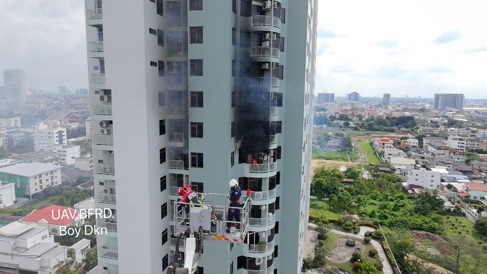 กทม.เร่งช่วยเหตุเพลิงไหม้คอนโดฯ38ชั้น ล้อมคอกระบบป้องกันอัคคีภัยตึกสูง