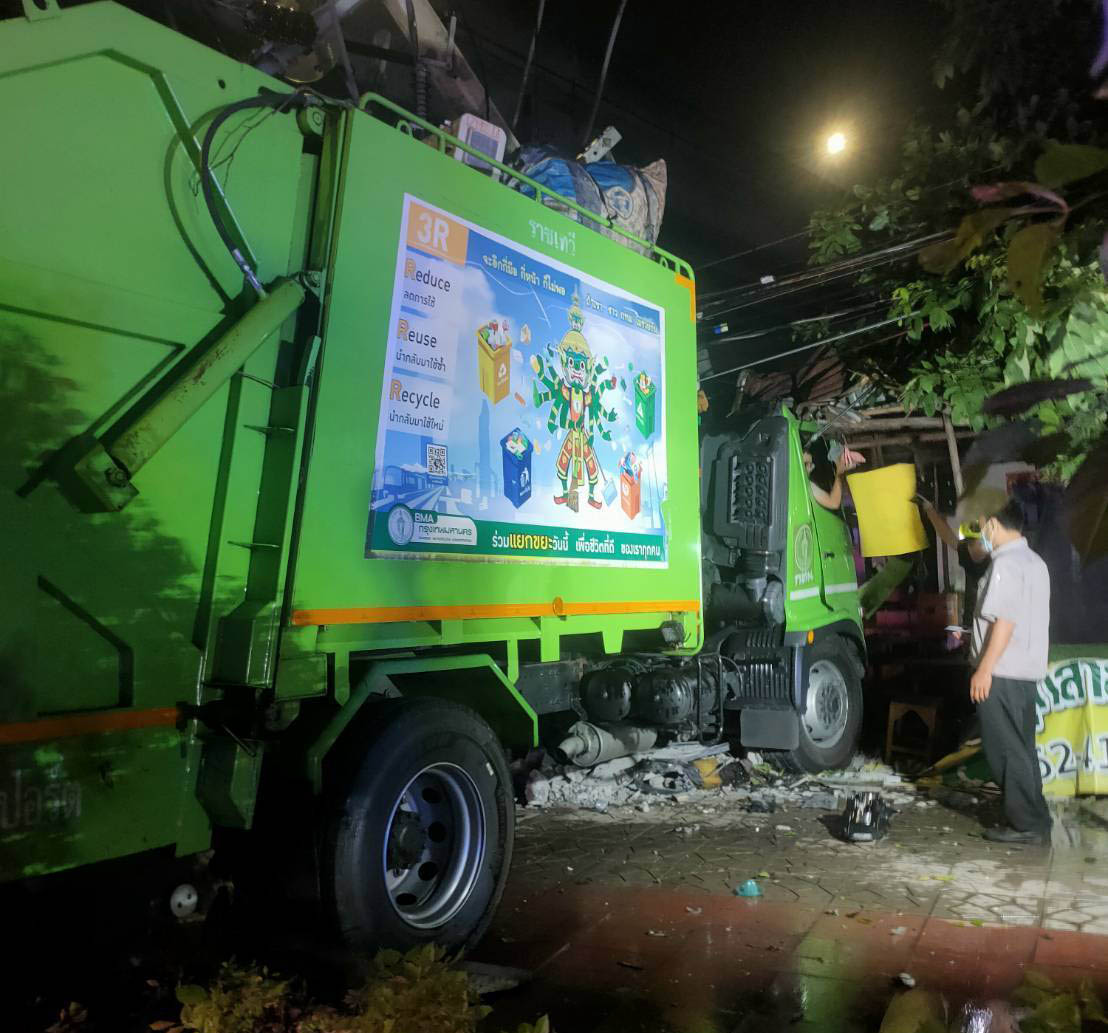 'ราชเทวี'เร่งตรวจเหตุรถขยะชนเสาไฟฟ้า ซ.เทพรักษ์52เข้มควบคุมรถเก็บขนขยะ