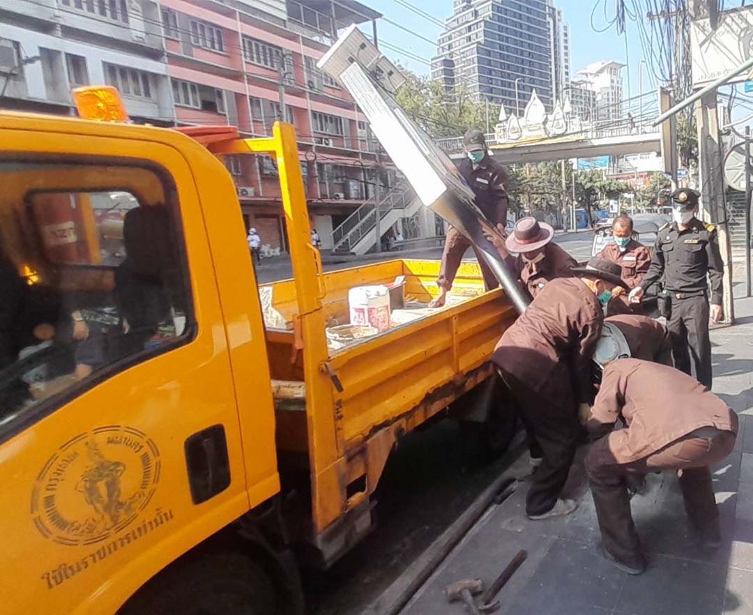 กทม.ลุยตรวจรื้อป้ายโฆษณาไม่ขออนุญาต ขู่ดำเนินการตามกฎหมายขั้นเด็ดขาด