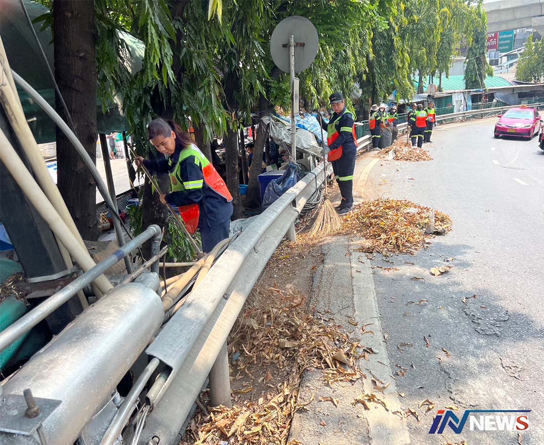 เขตจตุจักรรุดทำความสะอาดไหล่ทางบน สะพานกลับรถหน้าเซ็นทรัลลาดพร้าว