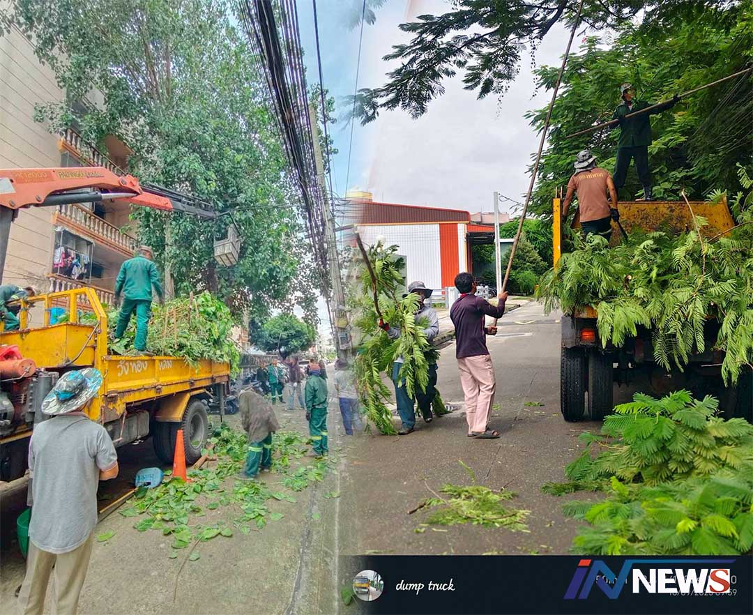 วังทองหลางเร่งตัดแต่งต้นไม้ถ.ลาดพร้าว ป้องกันอันตรายช่วงฝนฟ้าคะนอง