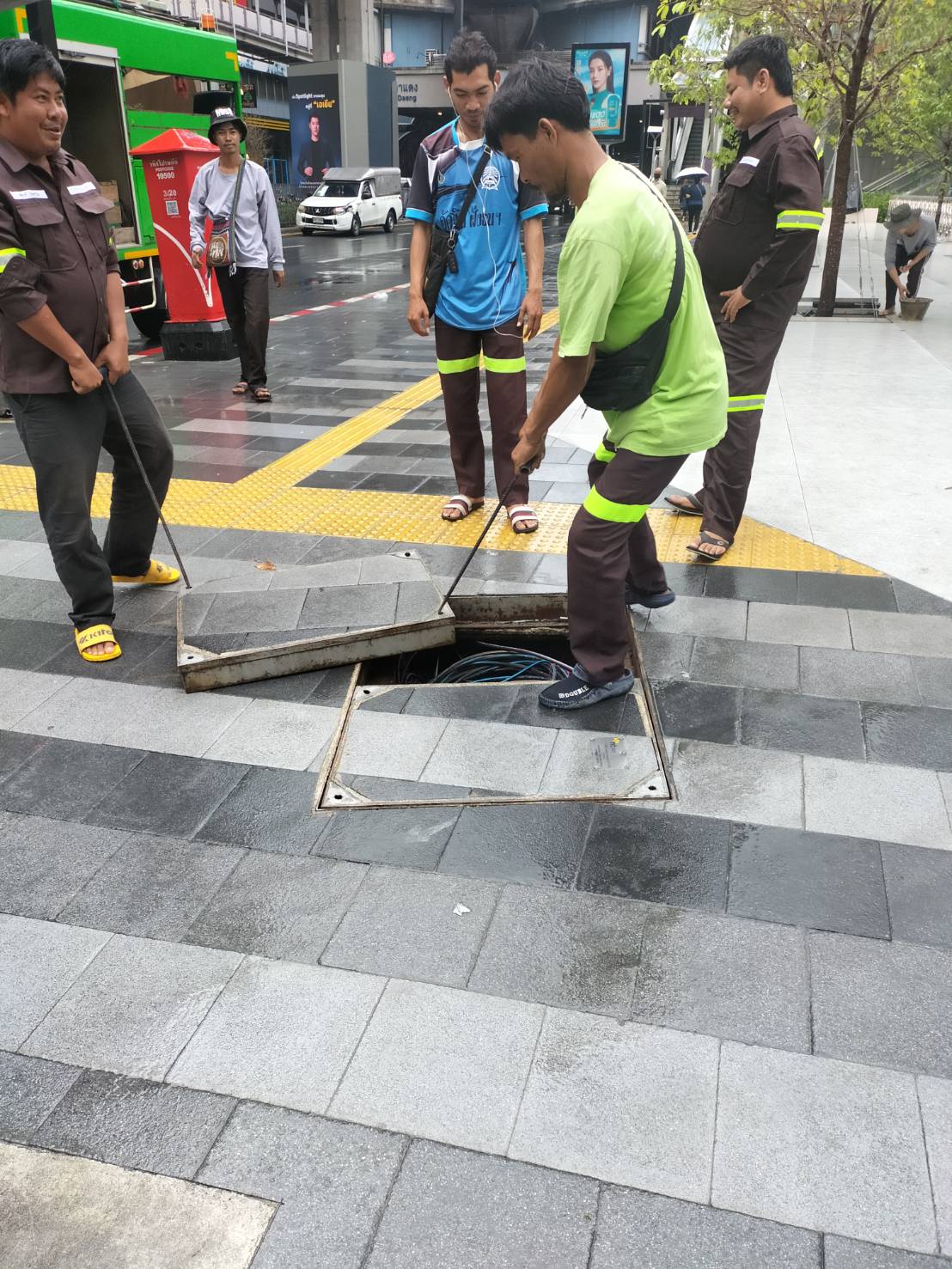 กทม.สลับปรับฝาบ่อพักท่อระบายน้ำหน้า อาคารParkสีลมให้เป็นแนวเดียวกัน