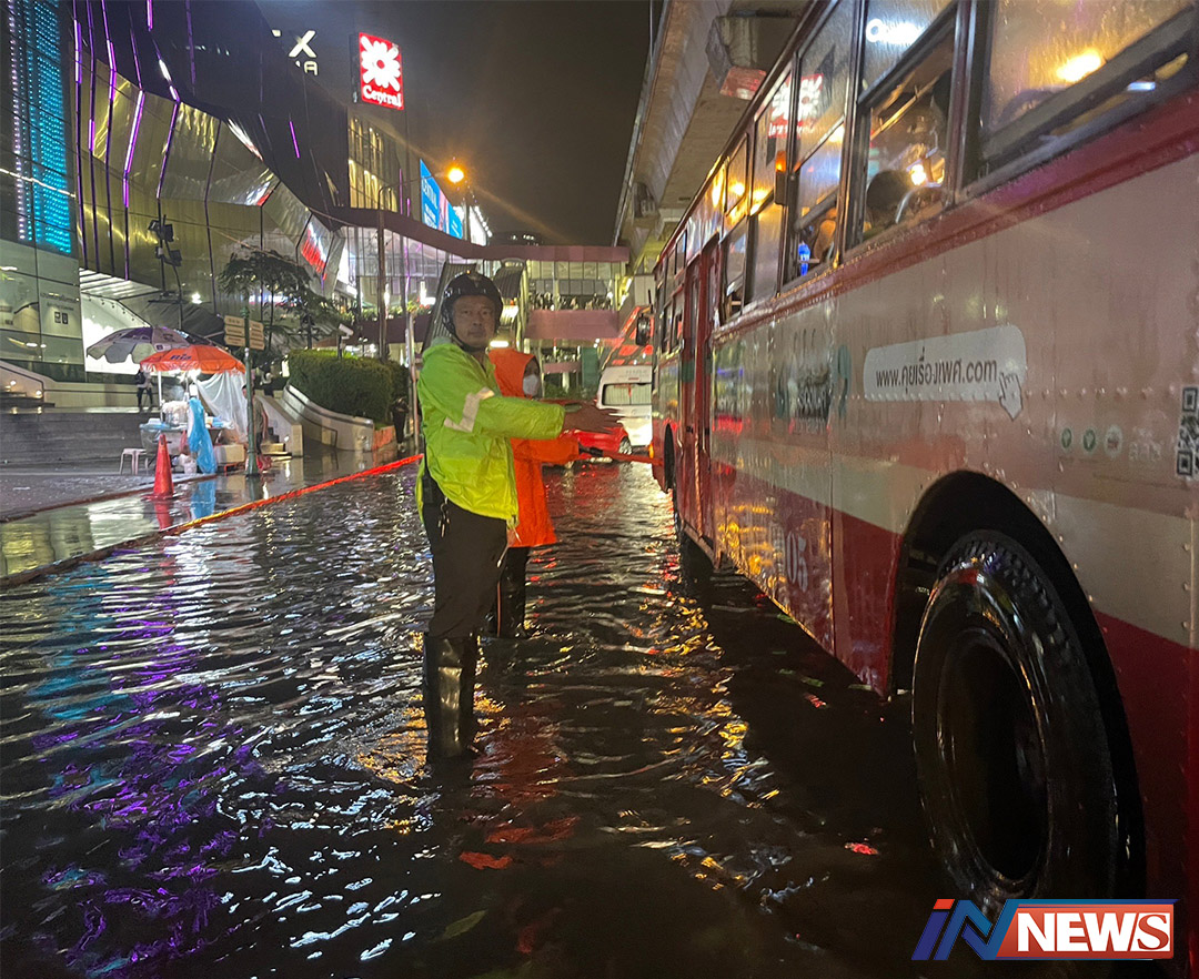 เขตจตุจักรตรวจสอบแก้ปัญหาน้ำท่วมขัง บริเวณห้าแยกลาดพร้าวหลังฝนตก
