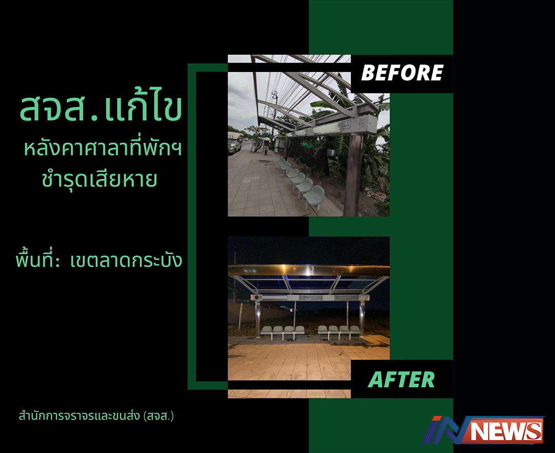 กทม.ซ่อมหลังคาศาลาที่พักผู้โดยสารฯ เขตลาดกระบังอำนวยความสะดวกปชช.