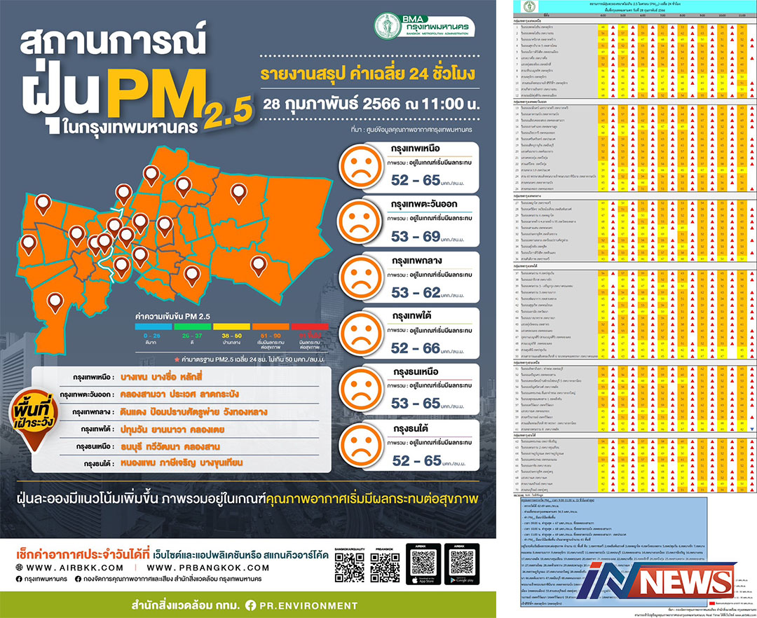 กทม.วันนี้อันตราย/6joPM2.5เกิน66พื้นที่ ตรวจวัดได้43-74มคก./มีแนวโน้มเพิ่มขึ้น