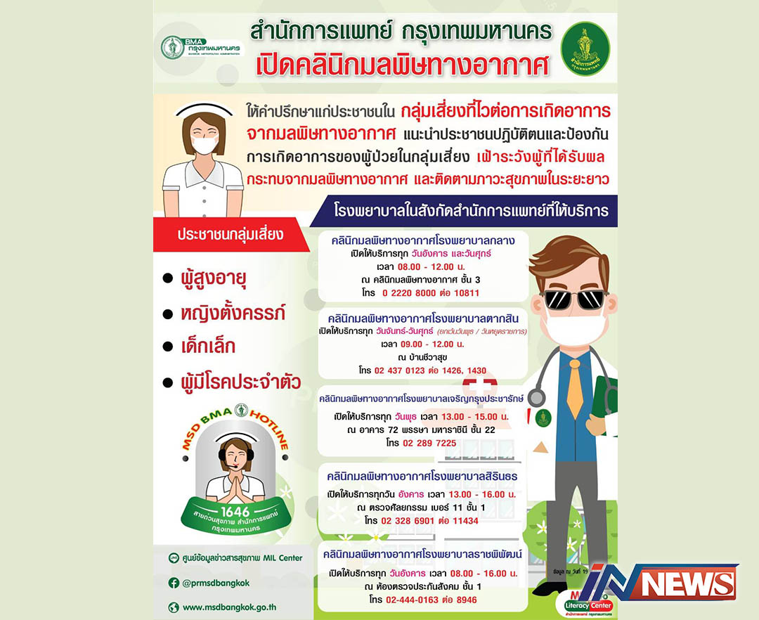 กทม.เตรียมด้านการแพทย์/สาธารณสุข ดูแลสุขภาพรับผลกระทบฝุ่น PM2.5