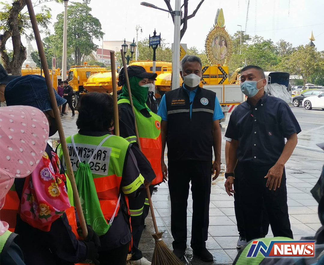 กรุงเทพฯ-ที่ปรึกษาผู้ว่าฯกทม.ตรวจเยี่ยมล้างทำความสะอาด ปรับภูมิทัศน์ถนนราชดำเนิน วอนคนใจบุญแจกอาหารในจุดที่กำหนด