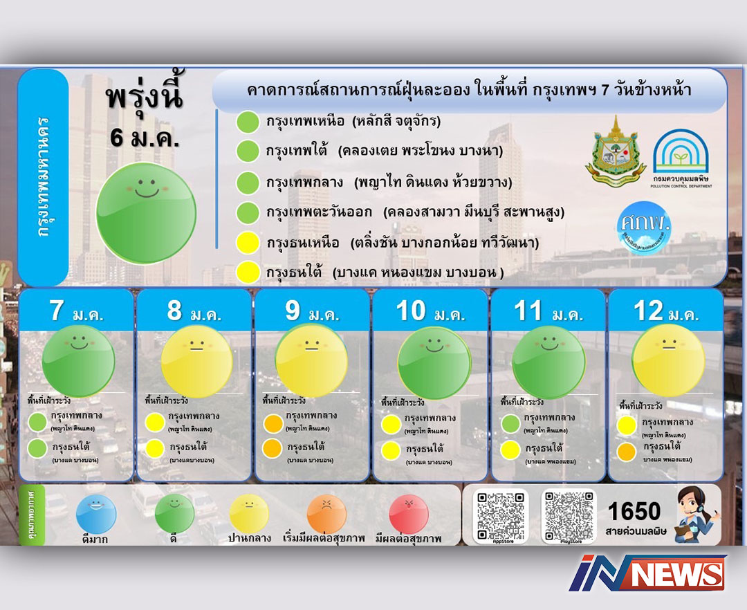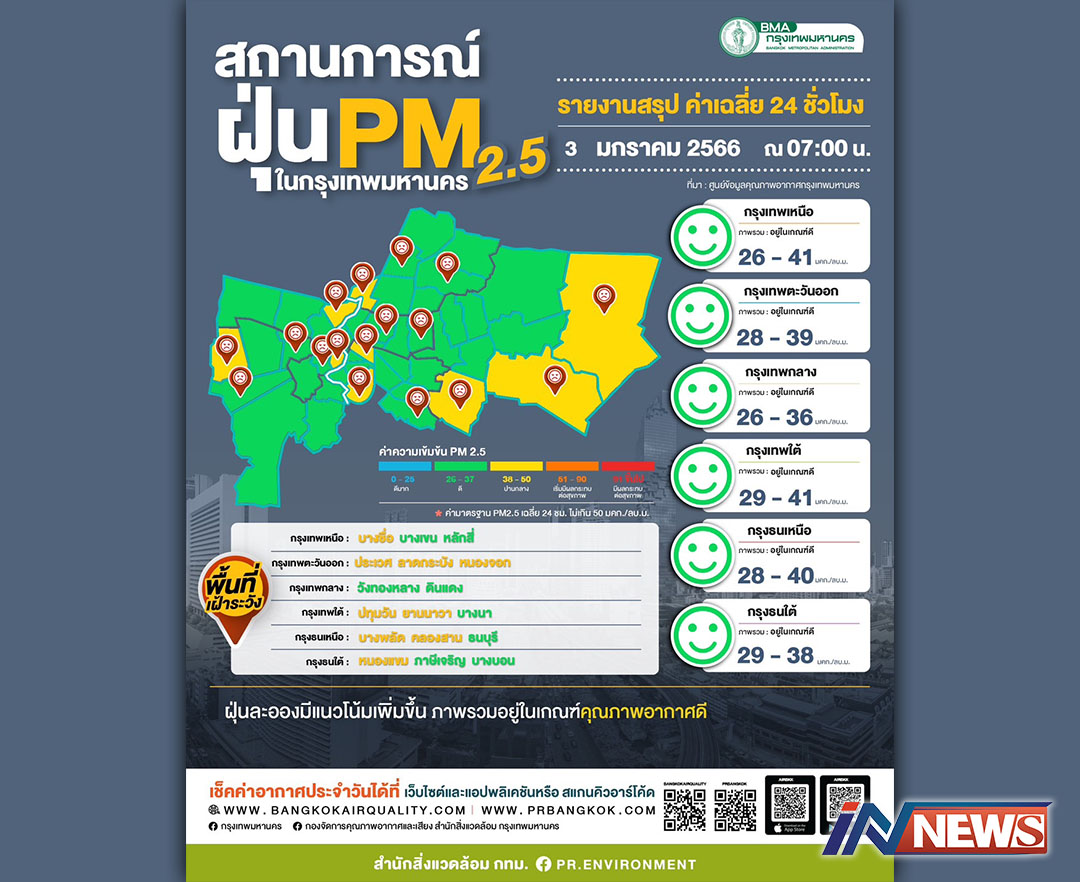 กรุงเทพฯ-ผลการตรวจวัด PM2.5 / 5 มกราคม 2566 เวลา 05.00-07.00 น. โดย ศูนย์ข้อมูลคุณภาพอากาศกรุงเทพมหานครตรวจวัดได้ 18-38 ...