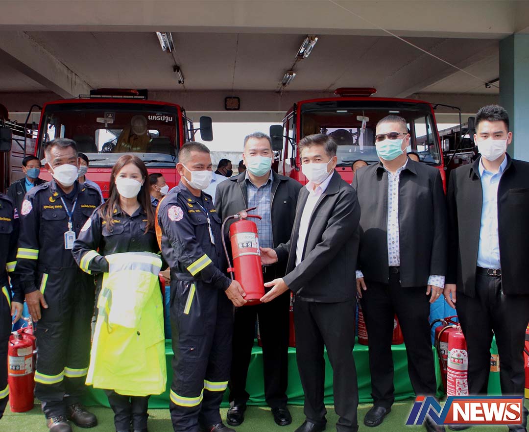 นครปฐม-นายกเสรินทร์ นายกเทศมนตรีนครนครปฐม นำคณะผู้บริหาร ที่ปรึกษา จัดมอบวัสดุเครื่องแต่งกายเจ้าหน้าที่งานป้องกันและบรรเ...