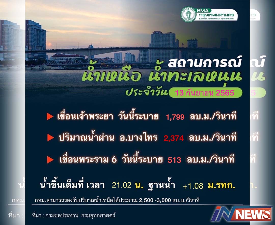 ยังรับมือได้!น้ำเหนือผ่านที่อ.บางไทรวันนี้ เพิ่มขึ้น2.3ลบ.ม./วิ.-กทม.ยันเอาอยู่