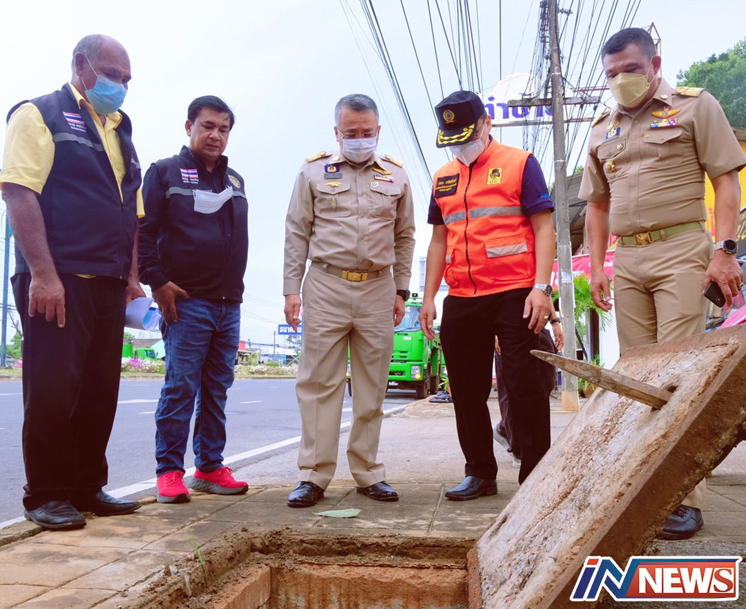 ผู้ว่าสุราษฎร์ฯลงพื้นที่ให้กำลังใจเจ้าหน้าที่ดูดทรายลอกท่อระบายน้ำ