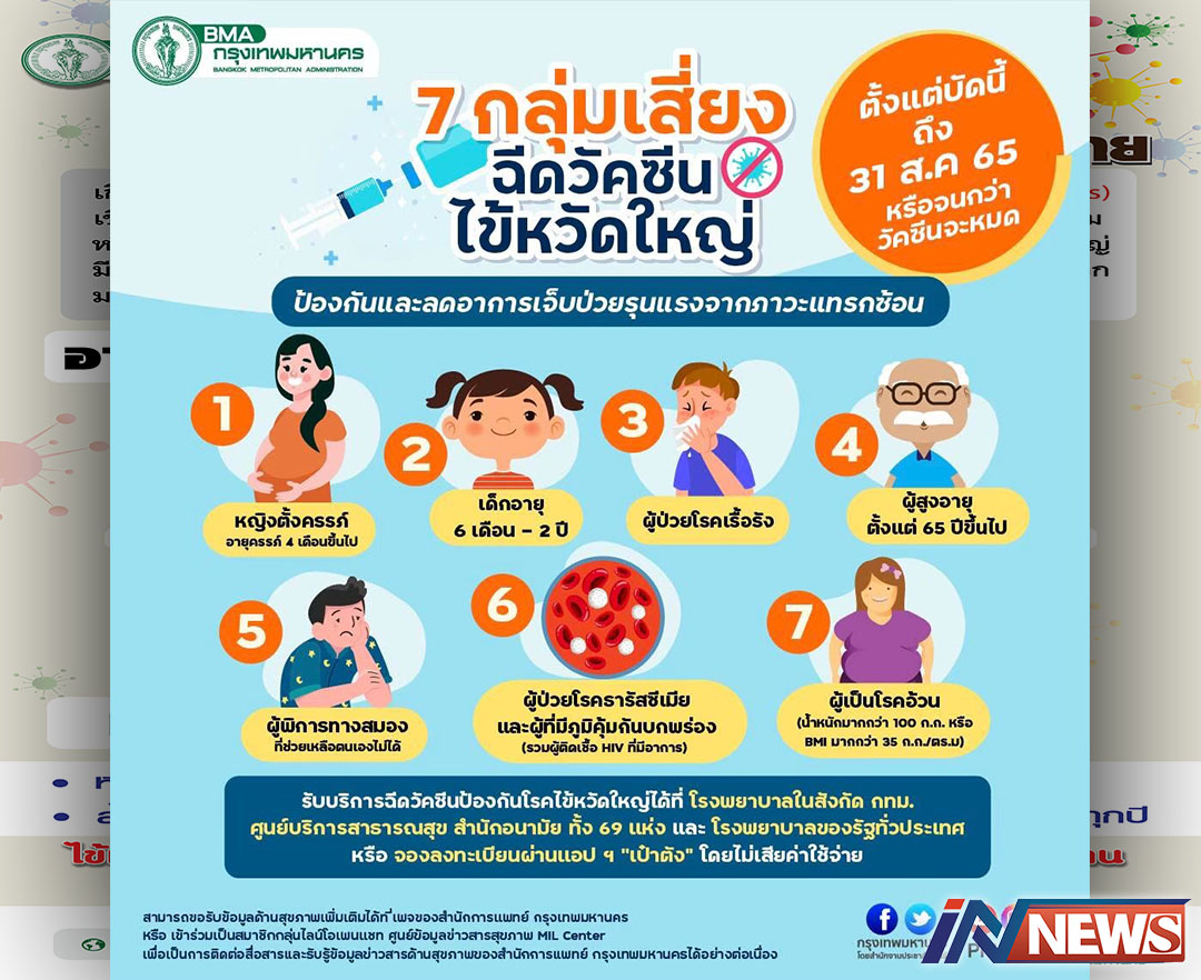 กรุงเทพฯ-สำนักการแพทย์และสำนักอนามัย กทม.เน้นย้ำความจำเป็นการฉีดวัคซีนไข้หวัดใหญ่ - รณรงค์ 7 กลุ่มเสี่ยงเร่งเข้ารับบริกา...