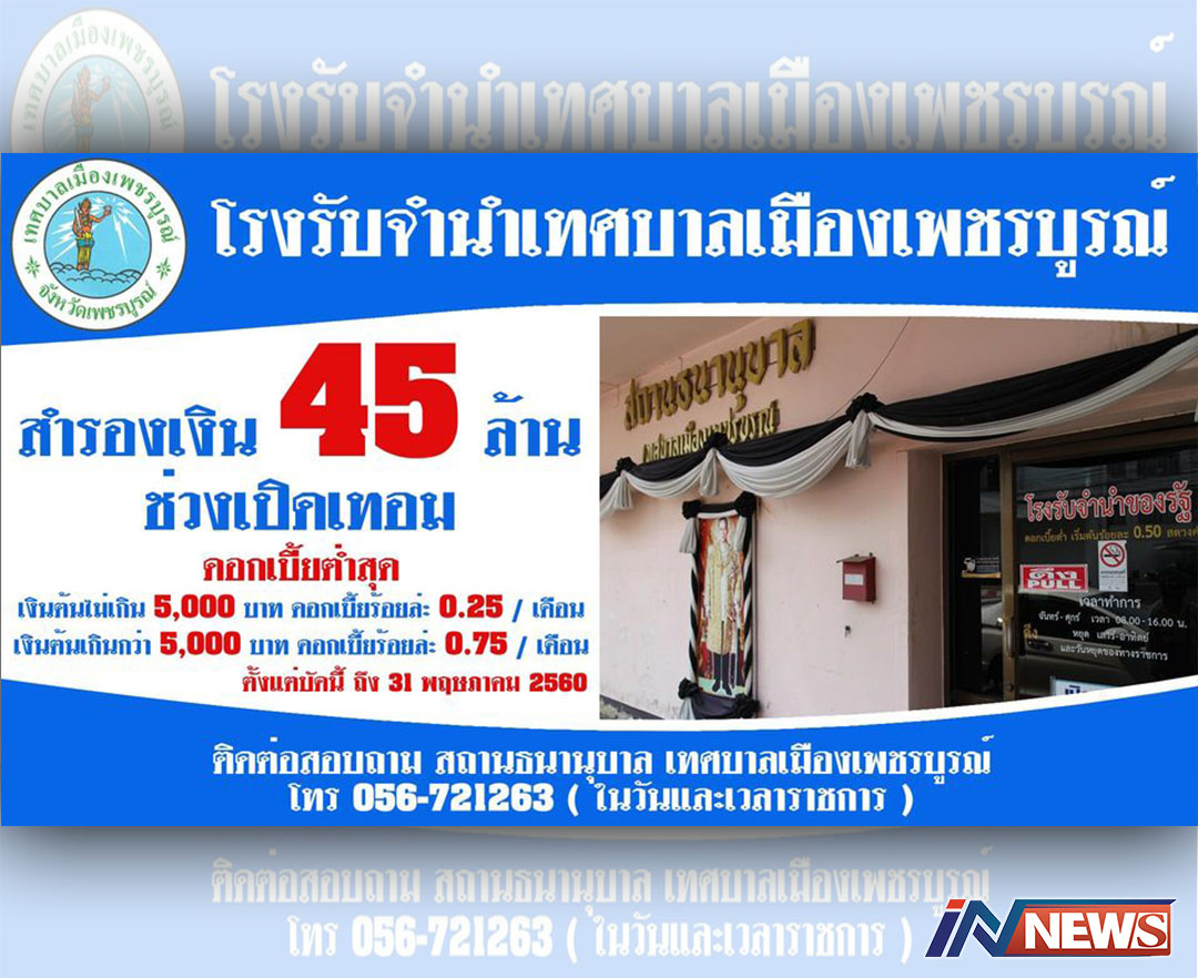 ทม.เพชรบูรณ์เตือนปชช.ให้ระวังมิจฉาชีพ อ้างโรงจำนำเทศบาลหาผลประโยชน์
