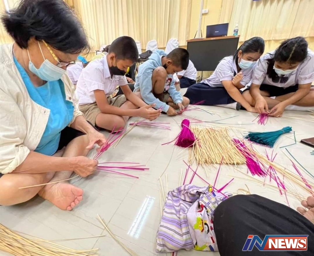 อบต.โก่งธนูฝึกเยาวชนฟื้นฟูวัฒนธรรม เรียนรู้ภูมิปัญญา'จักสานพัด-พวงหรีด'