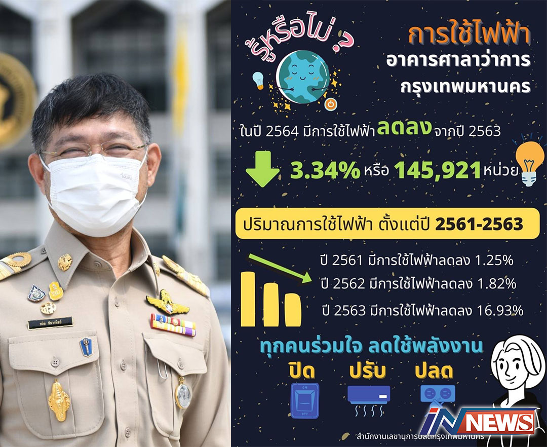 กทม.ขานรับนโยบายรัฐลดใช้พลังงาน ในหน่วยงานกทม.ตั้งแต่เม.ย.-ก.ย.2565