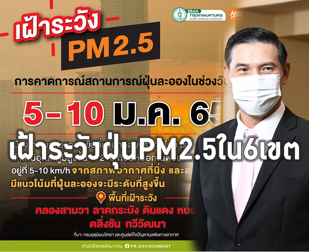 กทม.เข้มมาตรการเฝ้าระวังลดฝุ่น PM2.5 จับตา5-6ม.ค.นี้ใน6พื้นที่เขต