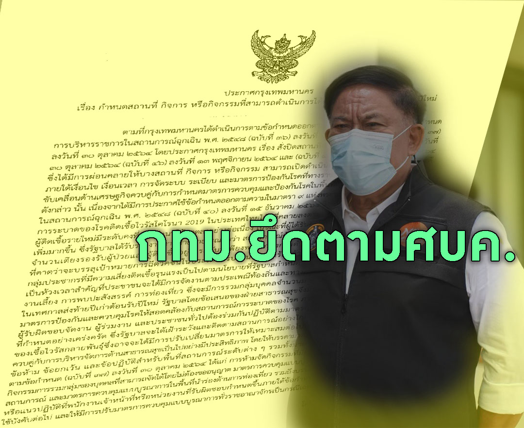 กรุงเทพฯ-มติที่ประชุมคณะกรรมการโรคติดต่อกรุงเทพมหานคร เมื่อวันที่ 15 ธันวาคม 2564 ปรับมาตรการป้องกันการแพร่ระบาดของโรคโค...