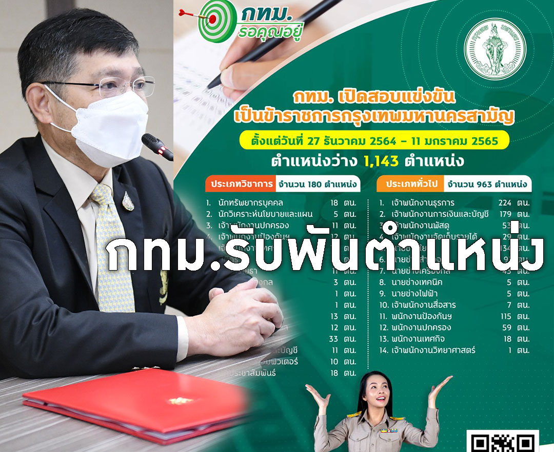 ข่าวดี!กทม.เปิดรับสอบแข่งขันเป็นขรก. กว่า1พันตำแหน่ง27ธ.ค.-11ม.ค.65