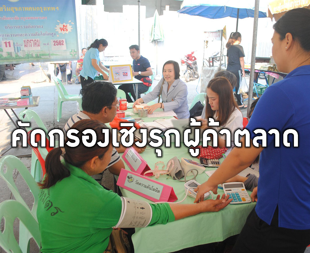 กรุงเทพฯสำนักงานตลาดกรุงเทพมหานคร คัดกรองเชิงรุกผู้ค้าในตลาด กทม. - ประเมิน Thai Stop Covid Plus สร...