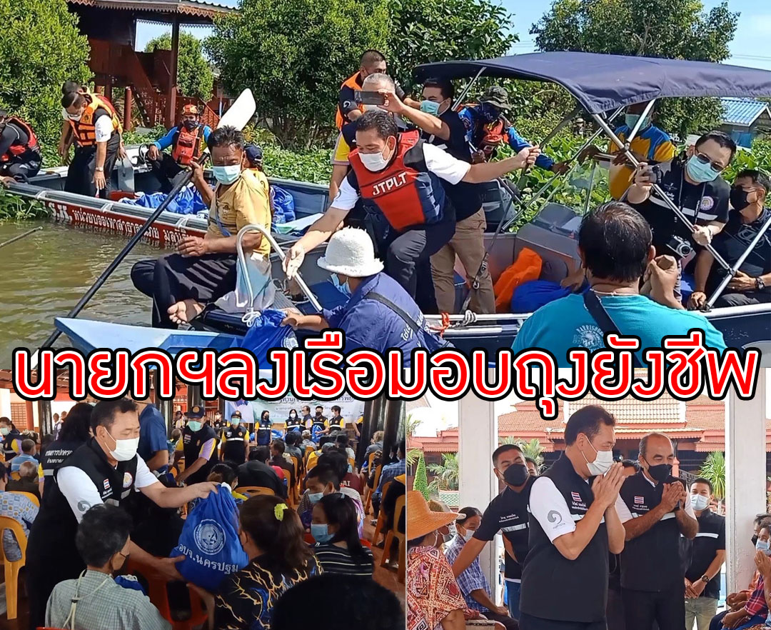นายกหนึ่งนำทีมอบจ.นครปฐมลงเรือมอบของยังชีพชาวบ้านอำเภอบางเลน