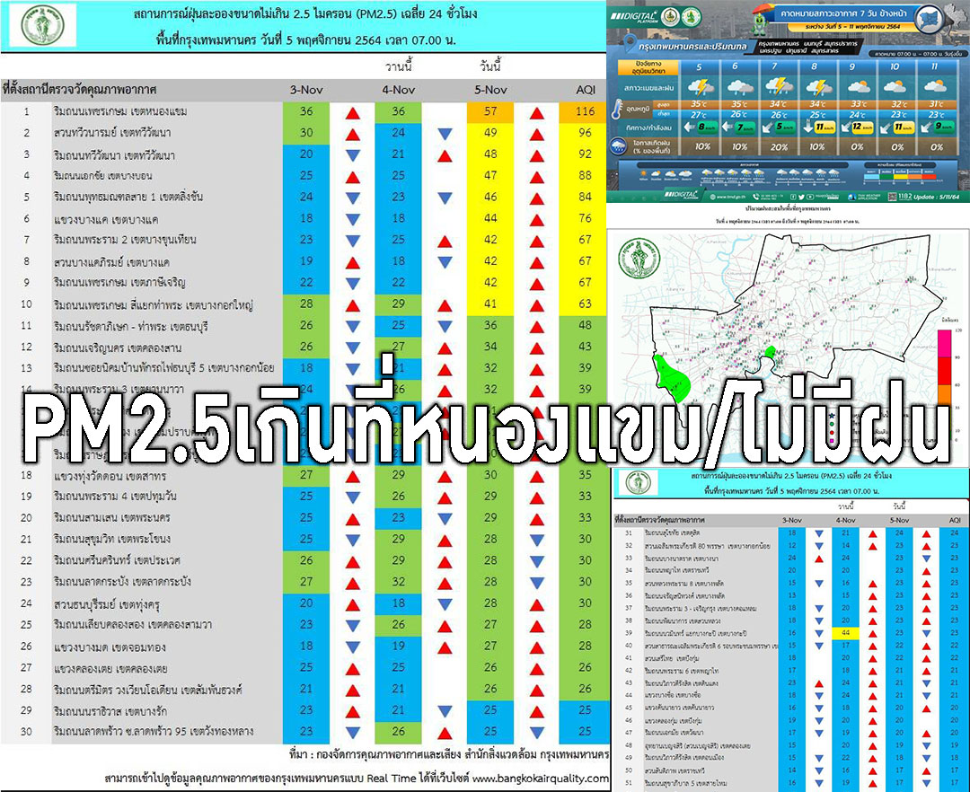 ค่าPM2.5วันนี้พื้นที่เขตหนองแขมขึ้นสีส้ม ส่วนสภาพอากาศไม่มีฝนแต่มีลมเย็น