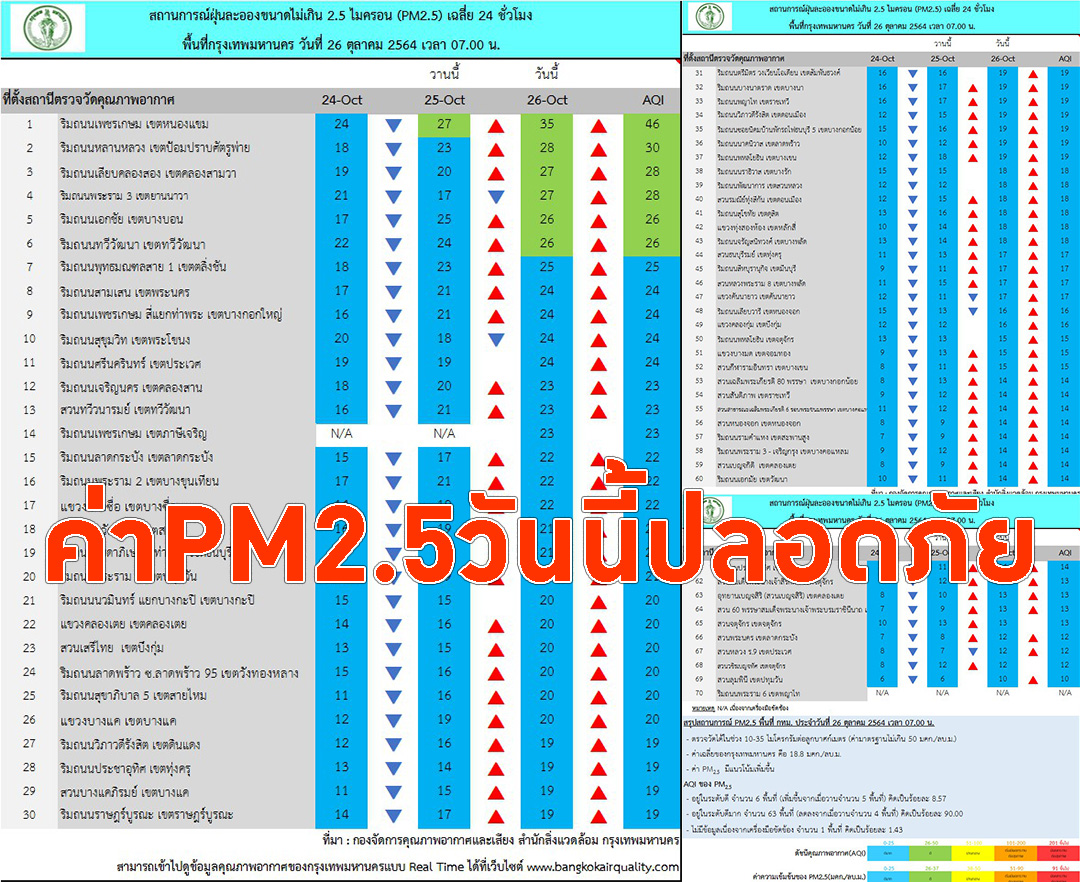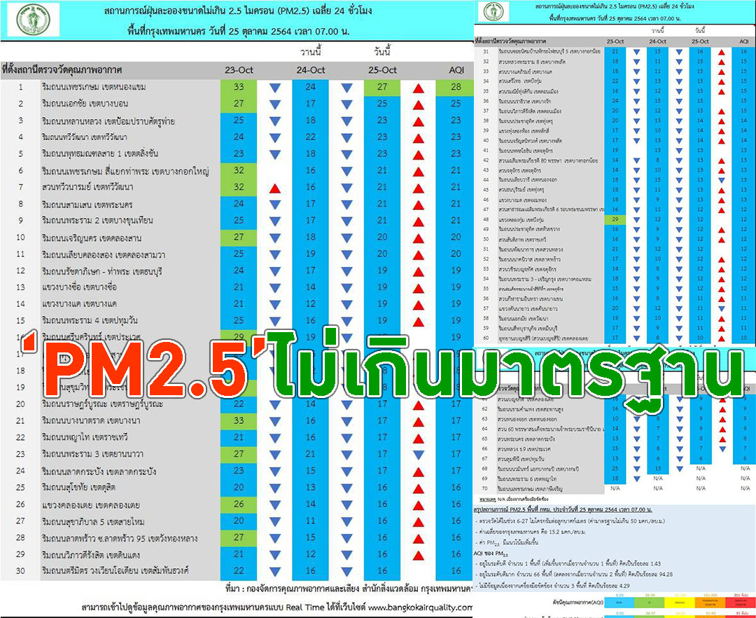อากาศในพื้นที่กทม.วันนี้ไม่เกินมาตรฐาน ค่าPM2.5อยู่ที่10-35มคก./ลบ.ม.