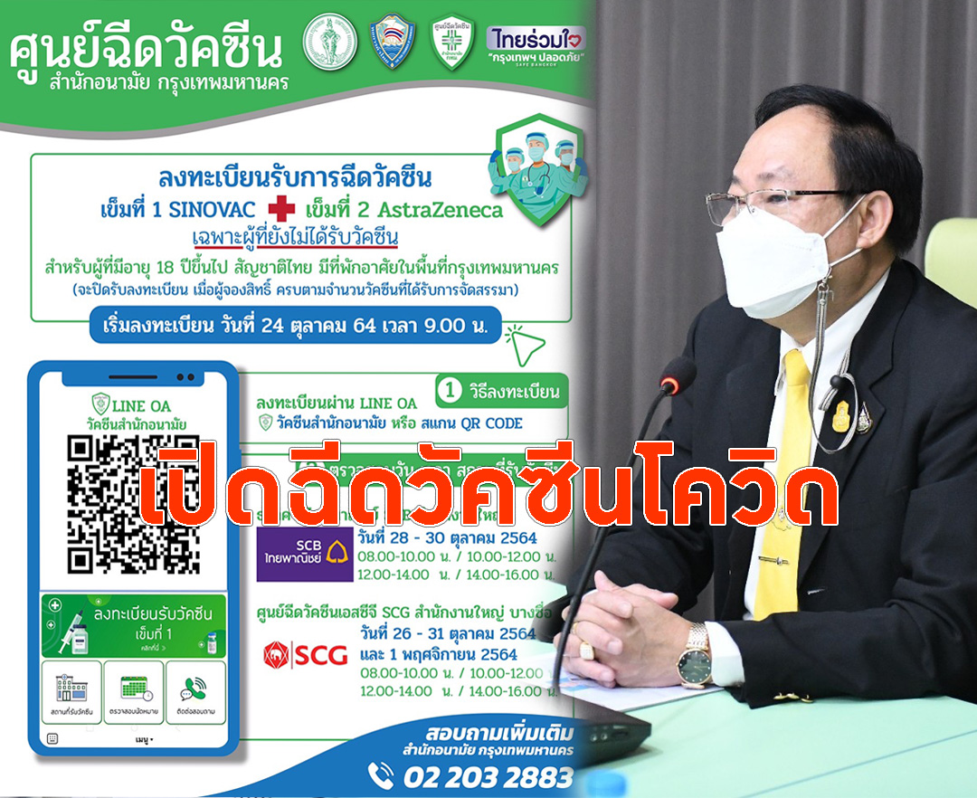 กทม.เปิดลงทะเบียนฉีดวัคซีนโควิดอีกรอบ ฉีดSV+AZรีบสมัครผ่านไทยร่วมใจ