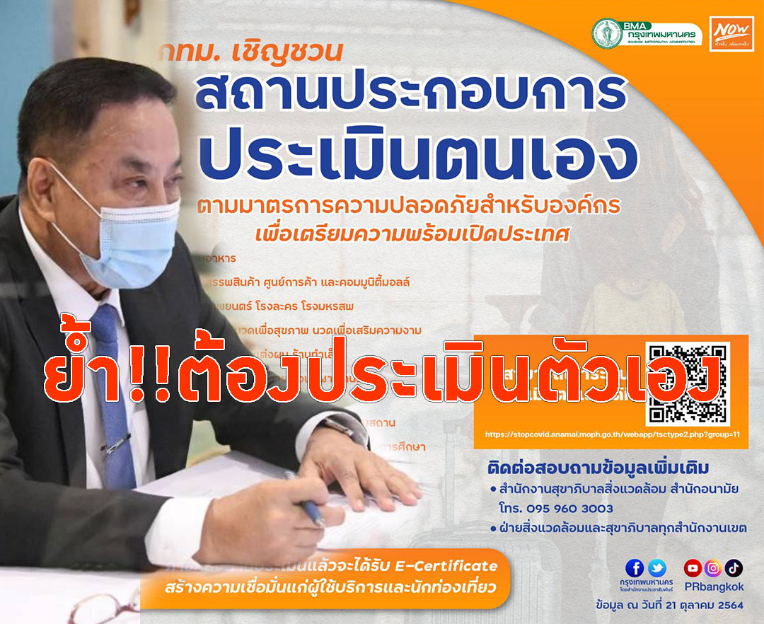 กทม.ย้ำผู้ประกอบการต้องประเมินตนเอง ผ่าน'Thai Stop COVID Plus'