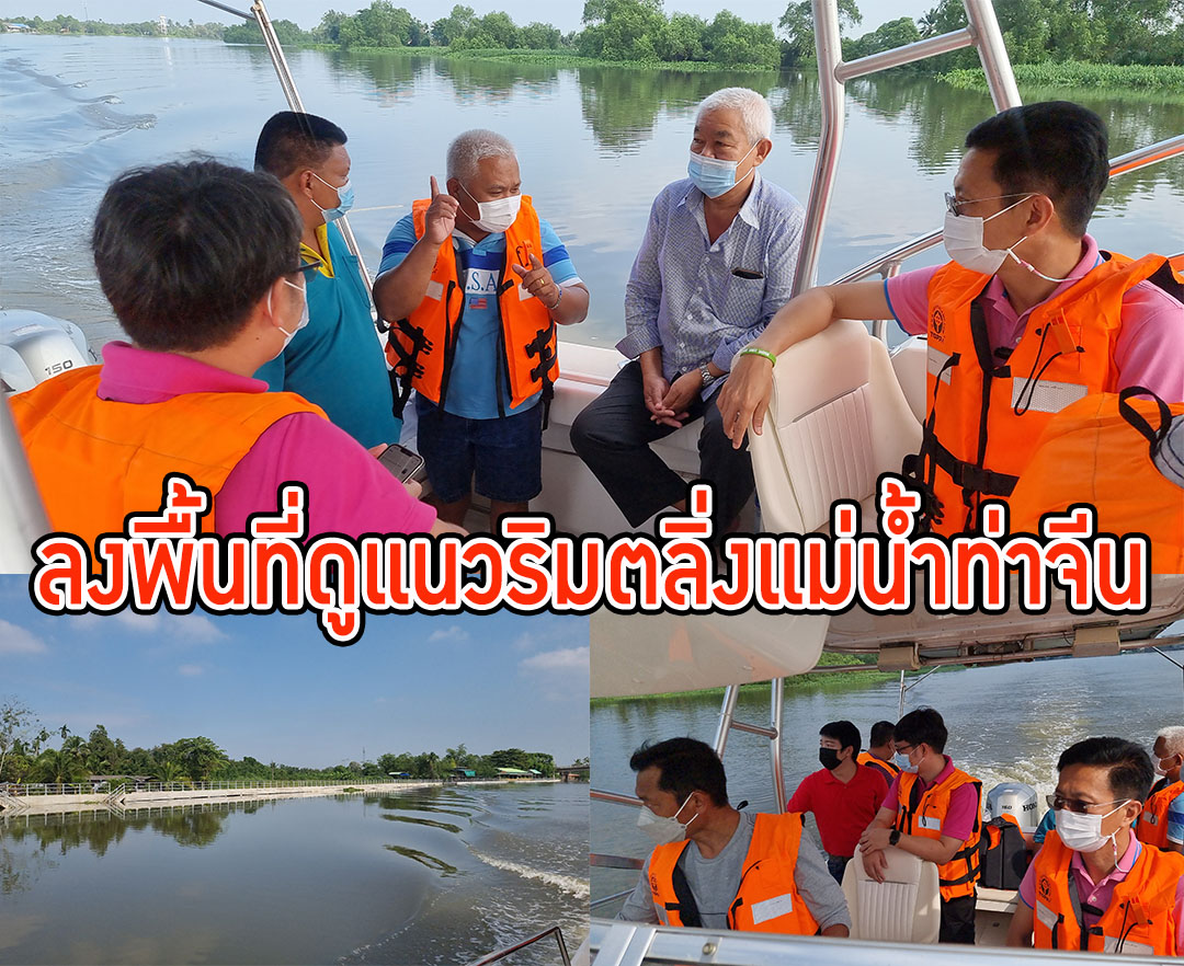ลงเรือดูแนวริมตลิ่งริมแม่น้ำท่าจีนหาจุด เสี่ยงน้ำเอ่อล้นพร้อมสนับสนุนอย่างเต็มที่