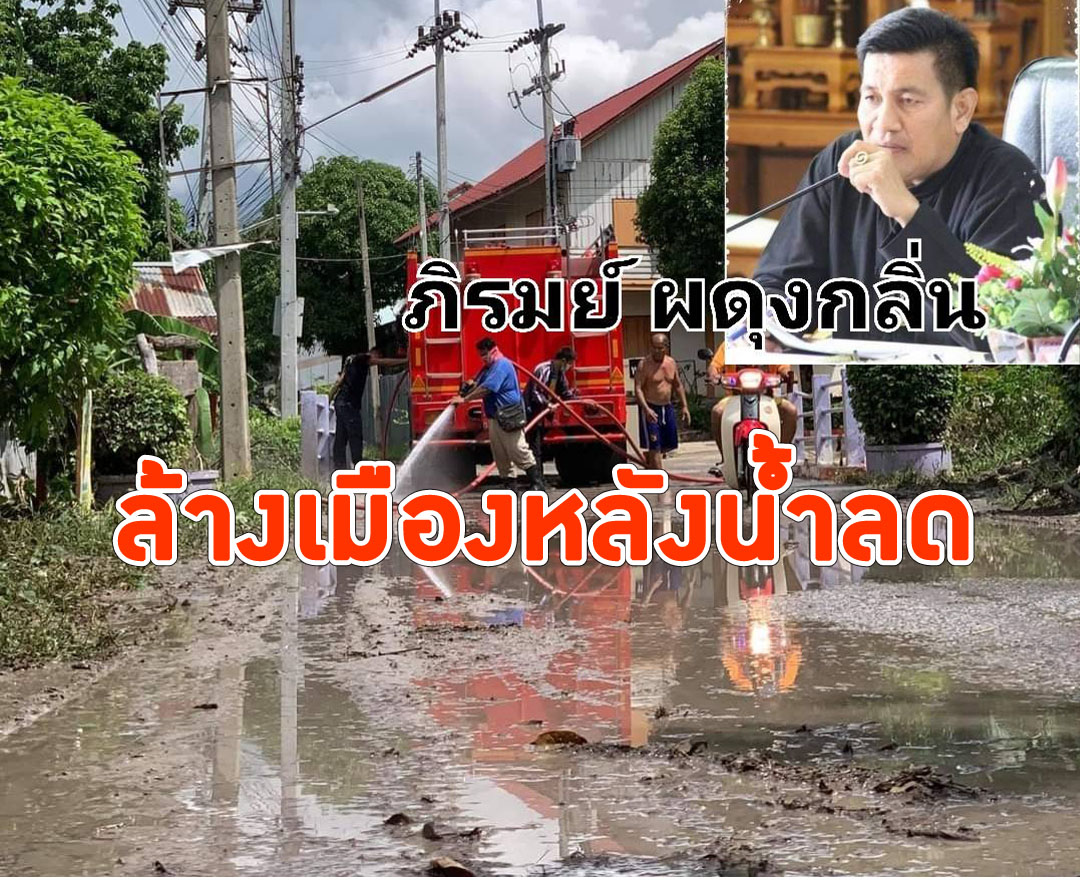 ลพบุรี-เทศบาลตำบลบ้านท่าหลวงทำความสะอาดหลังน้ำลดจากสถานการณ์พายุเตี้ยนหมู่ ทำไห้น้ำท่วมพัดพานำสิ่งสกปรก ดินโคลน สิ...