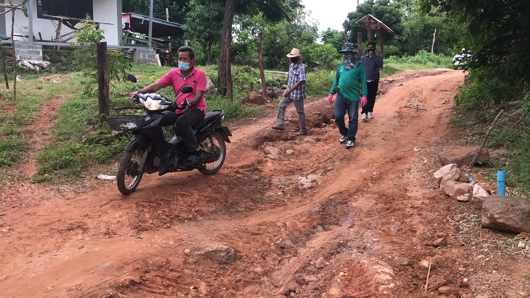 นายกทต.โคกสะอาดตรวจถนนหมู่บ้านพัง