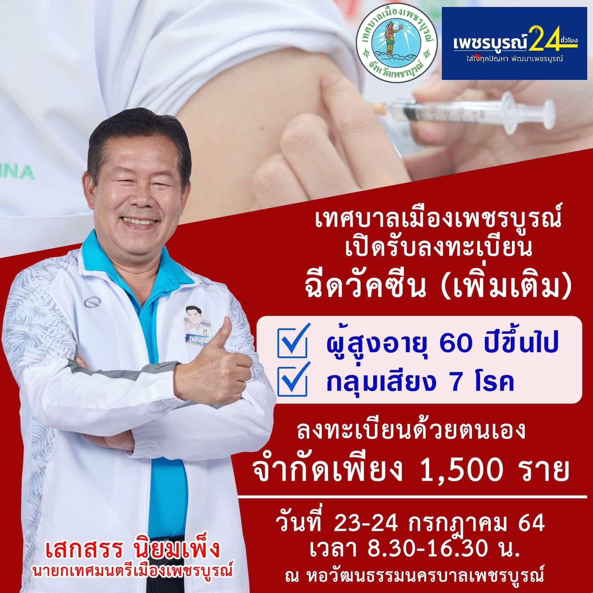 ทม.เพชรบูรณ์เปิดรับผู้สูงอายุ-7กลุ่มโรค ฉีดวัคซีน1.5พันสิทธิ์