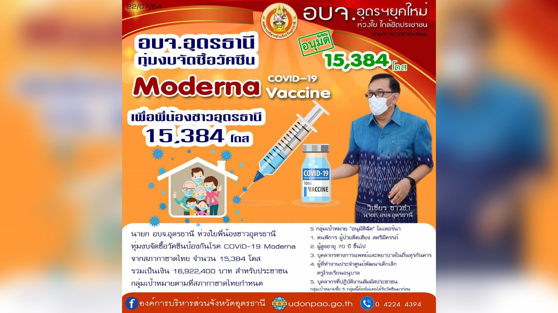 อบจ.อุดรธานีควัก16.9ล้านซื้อโมเดอร์นา
