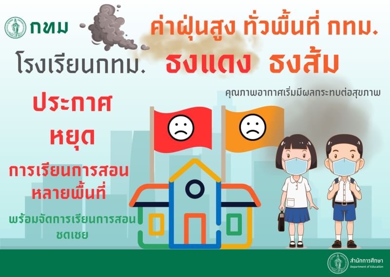 กรุงเทพฯ-โรงเรียนกทม. สั่งปิดการเรียนแล้ว 39 แห่ง หลังค่าฝุ่น PM 2.5 สูง พร้อมจัดการเรียนการสอนแบบออนไลน์ชดเชย