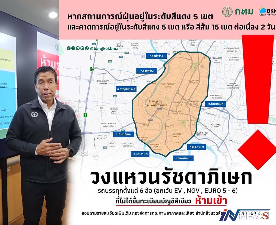 กรุงเทพฯ-กทม. ยกระดับสู้ฝุ่น PM2.5 ด้วยประกาศมาตรการ LEZ ห้ามรถบรรทุกนอกบัญชี Green List เข้าพื้นที่ 13 เขต ในวงแหวนรัชด...