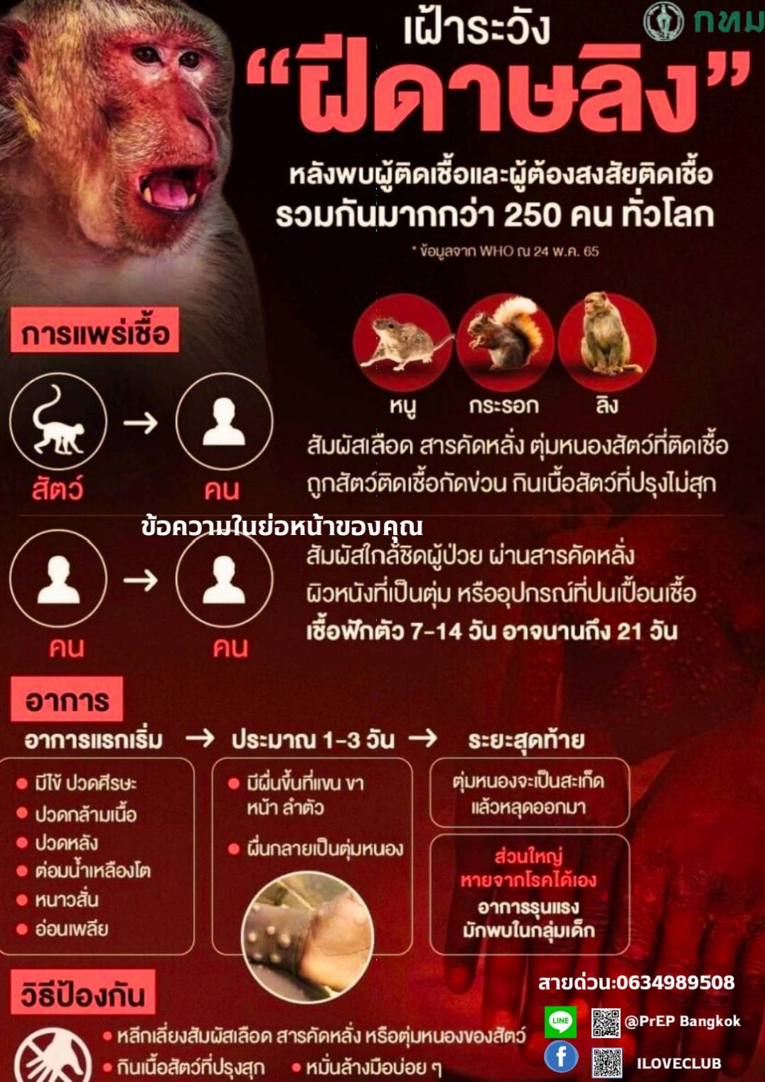 กทม.เตรียมมาตรการเฝ้าระวัง-ป้องกันการ แพร่ระบาดโรคฝีดาษลิงในกรุงเทพฯ