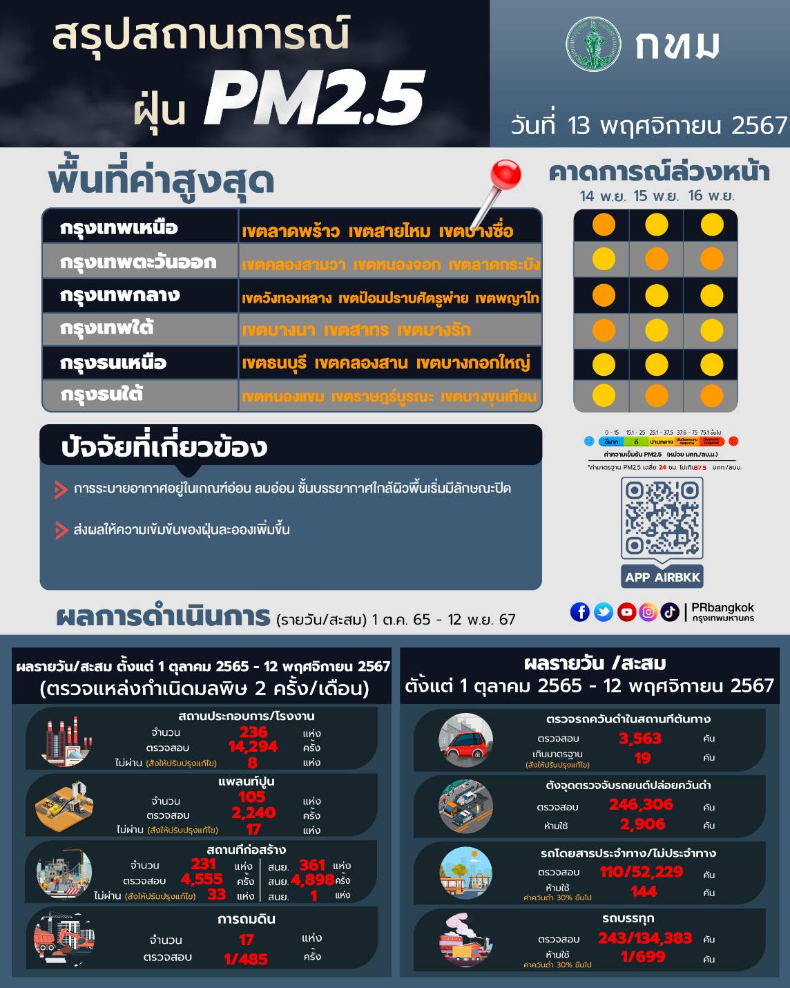 กทม.ขับเคลื่อนแผนป้องกันฝุ่น PM2.5 ตรวจสถานประกอบการ-จุดกำเนิดมลพิษ