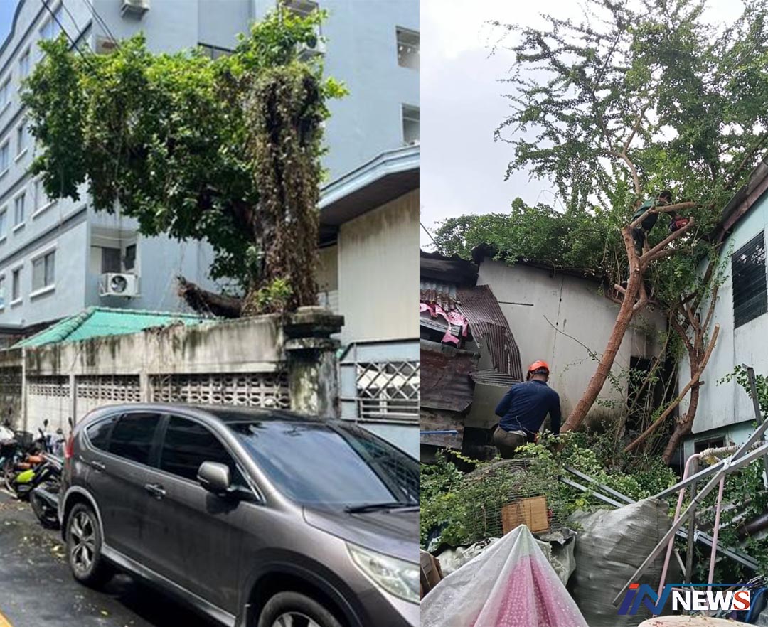 เขตพญาไทเเก้ไขเหตุต้นไม้ใหญ่โค่นล้มจากพายุฝนลมแรงในซอยอินทามระ 10