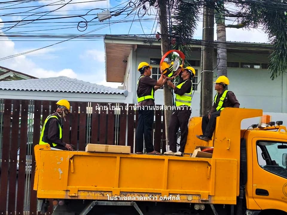เขตลาดพร้าวติดตั้งกระจกโค้งทดแทน ของเดิมที่ชำรุดเพิ่มความปลอดภัย