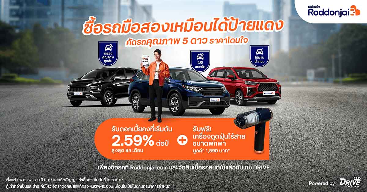 Roddonjaiชวนเป็นเจ้าของรถมือสองที่ดี ในราคาโดนใจรับดอกเบี้ย2.59%ต่อปี